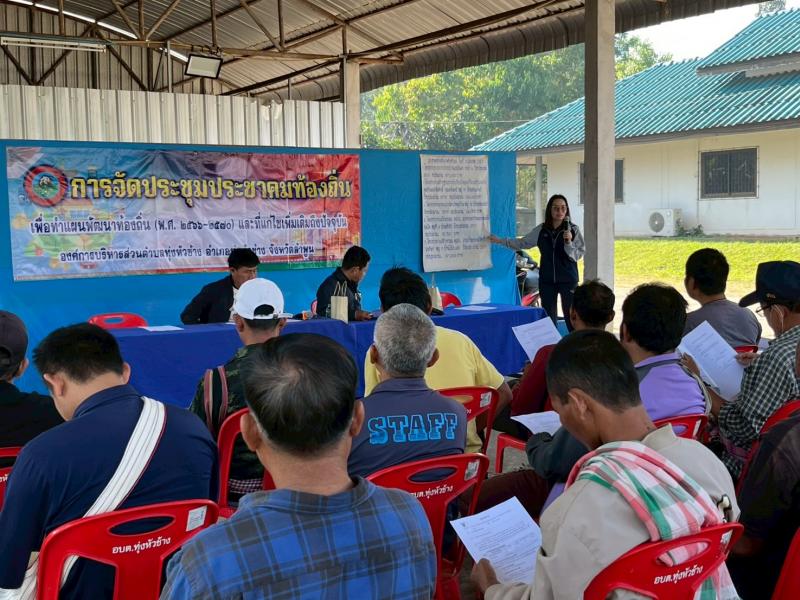 description วันที่ 25 มีนาคม 2569 องค์การบริหารส่วนตำบลทุ่งหัวช้าง ได้จัดประชุมประชาคมท้องถิ่นระดับอำเภอ เพื่อพิจารณาร่างแผนพัฒนาท้องถิ่น (พ.ศ.2566-2570) เพิ่มเติมครั้งที่ 1 /2569 และเสนอปัญหา/ความต้องการ บรรจุในแผนพัฒนาท้องถิ่น (พ.ศ.2566-2570) ณ องค์การบริหารส่วนตำบลทุ่งหัวช้าง person admin