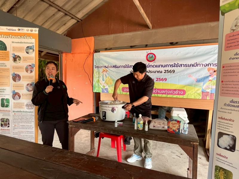description วันที่ 31 มีนาคม 2569 นายบันพุฒ คำตา นายกองค์การบริหารส่วนตำบลทุ่งหัวช้าง มอบหมายให้ นายวีระพล เตชะนา นักวิชาการเกษตรชำนาญการ ลงพื้นที่จัดโครงการส่งเสริมการใช้สารอินทรีย์ทดแทนการใช้สารเคมีทางการเกษตร โดยมีวัตถุประสงค์ เพื่อส่งเสริมให้ประชาชนใช้สารอินทรีย์ทดแทนการใช้สารเคมีทางการเกษตร ศึกษาเรียนรู้การลดต้นทุนการผลิต และเพื่อส่งเสริมให้ประชาชน มีความรู้ในการผลิตสารอินทรีย์และนำไปปฏิบัติใช้ในการประกอบอาชีพ โดยมี ผู้นำชุมชน ประชาชนในพื้นที่เข้าร่วม ณ ศาลากลางบ้าน หมู่ที่ 4 บ้านหัวขัว ตำบลทุ่งหัวช้าง อำเภอทุ่งหัวช้าง จังหวัดลำพูน person admin