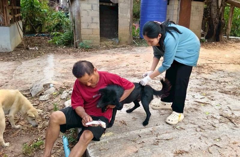 ลงพื้นที่ฉีดวัคซีนป้องกันโรคพิษสุนัขบ้า ประจำปีงบประมาณ พ.ศ. 2569 หมู่ที่ 10 บ้านหนองผำ